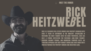Rick Heitzwebel is a seasoned real estate broker and property manager with over 17 years of experience. He has built his career on specializing in tenant placement, ensuring the right tenants are matched with the right properties to minimize vacancy periods and reduce turnover costs. Rick also works closely with investors, offering tailored guidance to help them identify opportunities and maximize the long-term value of their portfolios. His hands-on approach and strategic marketing expertise have consistently delivered strong results for clients across a wide range of property types.